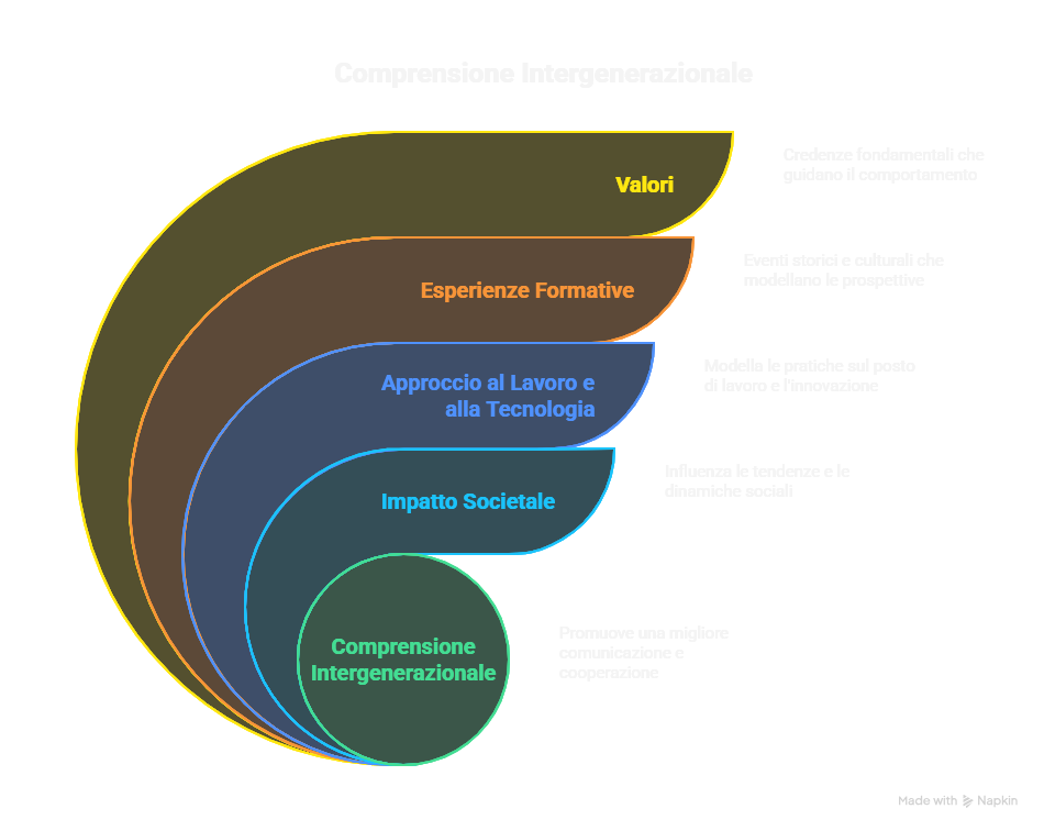Questo documento esplora le caratteristiche distintive delle diverse generazioni, dai Baby Boomer alla Generazione Alpha, analizzando i loro valori, le loro esperienze formative, il loro approccio al lavoro e alla tecnologia, e l’impatto che hanno sulla società. L’obiettivo è fornire una panoramica completa delle differenze e delle somiglianze tra queste generazioni, al fine di promuovere una migliore comprensione intergenerazionale.